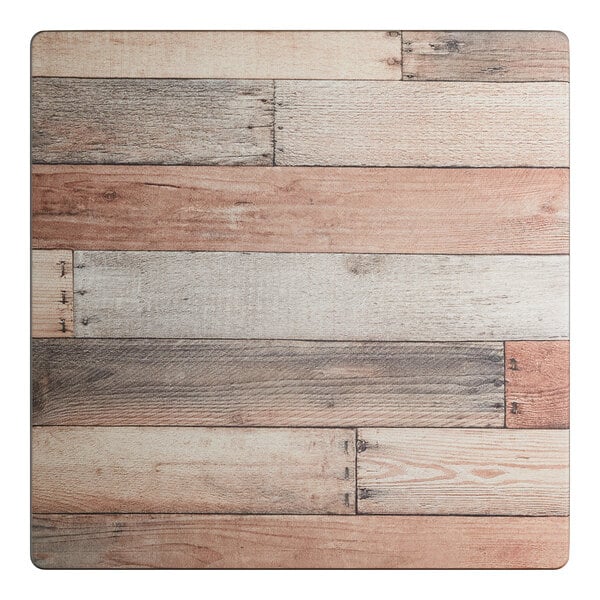 This square table top has a textured mixed plank finish that offers the rustic look of solid wood with a subtle, intriguing texture. Whether you're looking to revamp your restaurant's front-of-house space or enhance the appearance of your cafe patio or deck, this table top will spotlight the beauty of nature while focusing on an elegant dining experience in order to bring you the best of both worlds! This table top can be used with compatible Lancaster Table & Seating Excalibur table bases (sold separately). A screw length of 3/4" is recommended for installation (hardware sold separately).