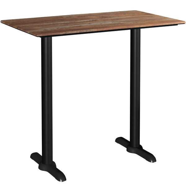 Lancaster Table & Seating Excalibur 28" x 48" Rectangular Bar Height Table with Textured Yukon Oak Finish and Two End Outdoor Base Plates