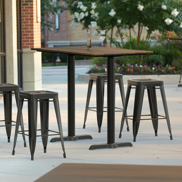 Lancaster Table & Seating Excalibur 28" x 48" Rectangular Counter Height Table with Textured Farmhouse Finish and Two End Outdoor Base Plates