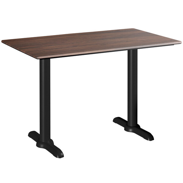 Lancaster Table & Seating Excalibur 28" x 48" Rectangular Standard Height Table with Textured Walnut Finish and Two End Outdoor Base Plates