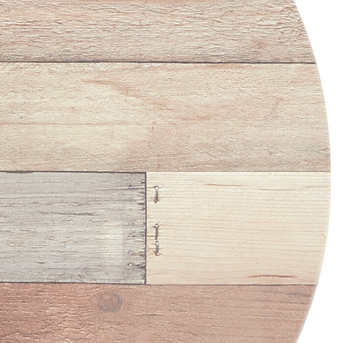 This round table top has a textured mixed plank finish that offers the rustic look of solid wood with a subtle, intriguing texture. Whether you're looking to revamp your restaurant's front-of-house space or enhance the appearance of your cafe patio or deck, this table top will spotlight the beauty of nature while focusing on an elegant dining experience in order to bring you the best of both worlds! This table top can be used with compatible Lancaster Table & Seating Excalibur table bases (sold separately). A screw length of 3/4" is recommended for installation (hardware sold separately).