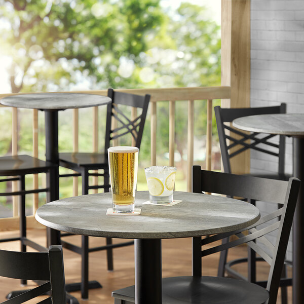 This round table top has a textured toscano finish that offers the rustic look of stone with a subtle, intriguing texture. Whether you're looking to revamp your restaurant's front-of-house space or enhance the appearance of your cafe patio or deck, this table top will spotlight the beauty of nature while focusing on an elegant dining experience in order to bring you the best of both worlds! This table top can be used with compatible Lancaster Table & Seating Excalibur table bases (sold separately). A screw length of 3/4" is recommended for installation (hardware sold separately).