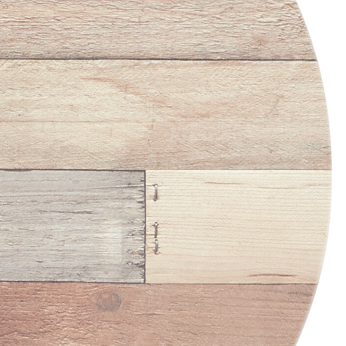 This round table top has a textured mixed plank finish that offers the rustic look of solid wood with a subtle, intriguing texture. Whether you're looking to revamp your restaurant's front-of-house space or enhance the appearance of your cafe patio or deck, this table top will spotlight the beauty of nature while focusing on an elegant dining experience in order to bring you the best of both worlds! This table top can be used with compatible Lancaster Table & Seating Excalibur table bases (sold separately). A screw length of 3/4" is recommended for installation (hardware sold separately).