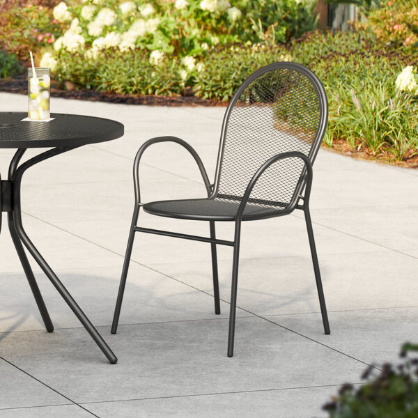 Lancaster Table & Seating Harbor Black Steel Mesh Outdoor Arm Chair