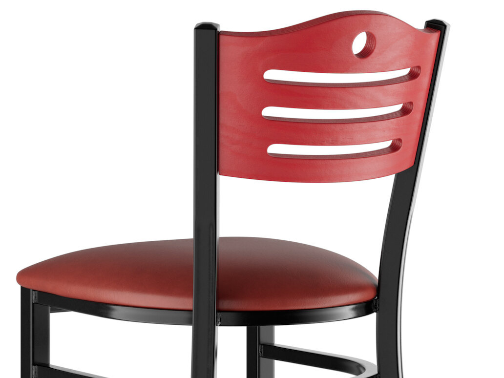 This bar stool features a style back with attractive slats and a cutout hole, which gives it a unique visual appeal. Plus, the bar stool's armless design is less restrictive and allows guests to socialize freely.