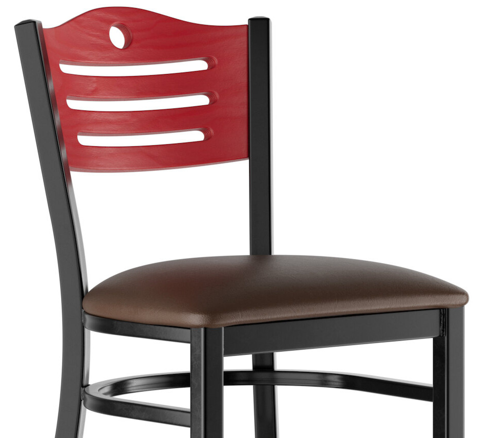 This bar stool features a style back with attractive slats and a cutout hole, which gives it a unique visual appeal. Plus, the bar stool's armless design is less restrictive and allows guests to socialize freely.
