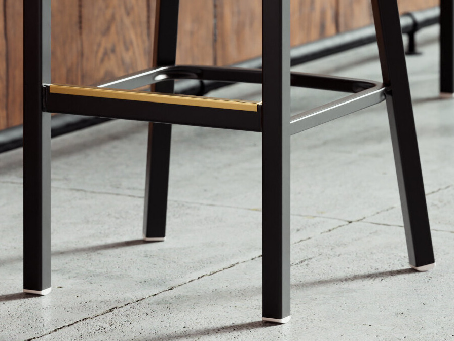 The bar stool's built-in footrest gives customers a place to rest their legs.