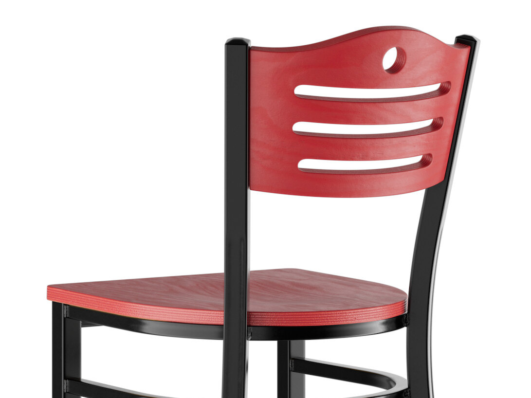 This bar stool's stylish back and wood seat combine with its modern steel frame to instill a unique look in any location. Plus, since this bar stool's back is contoured for a customer's back, it will provide comfort while maintaining a distinct appearance.