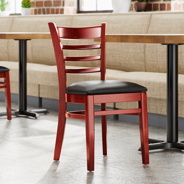 This chair also features a ladder back design that's contoured to provide extra support to your customers' upper backs. Plus, this design gives it a unique visual appeal, making it perfect for both upscale and casual decor, as well as anything in between.