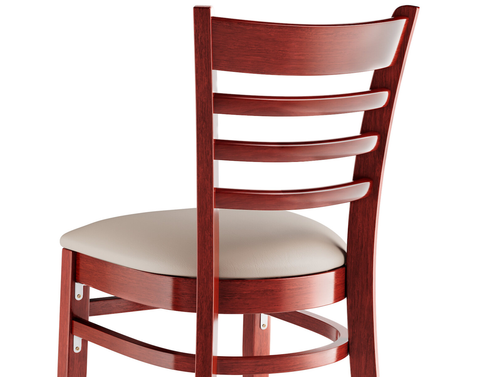 I bought the Lancaster Table & Seating Mahogany Finish Wooden Ladder Back Chair with 2 1/2" Padded Seat & this one (Lancaster Table & Seating Mahogany Finish Wooden Ladder Back Cafe Chair ) to compare the two. This one outshines the other.