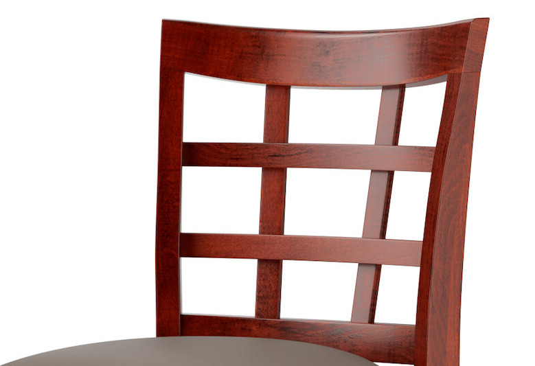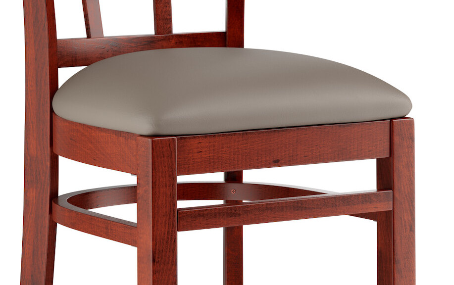 A nice, attractive style bar chair with a great back design. The mahogany finish is lovely and pairs nicely with our tables. The chairs are a great price and easy to keep clean.