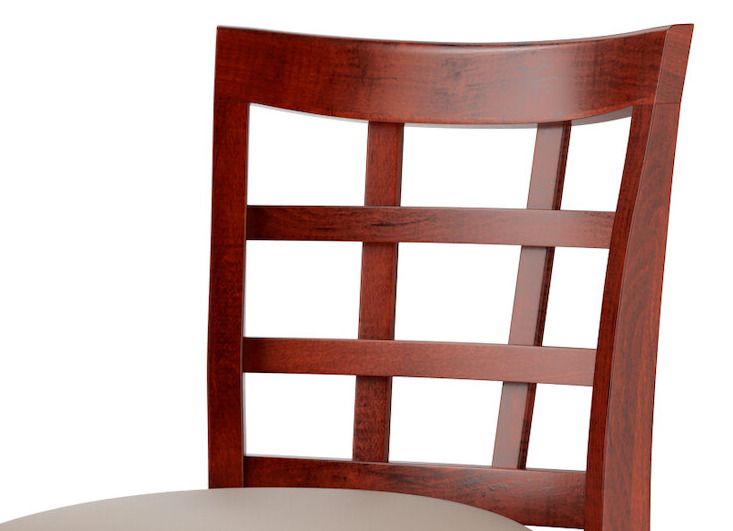 A nice, attractive style bar chair with a great back design. The mahogany finish is lovely and pairs nicely with our tables. The chairs are a great price and easy to keep clean.