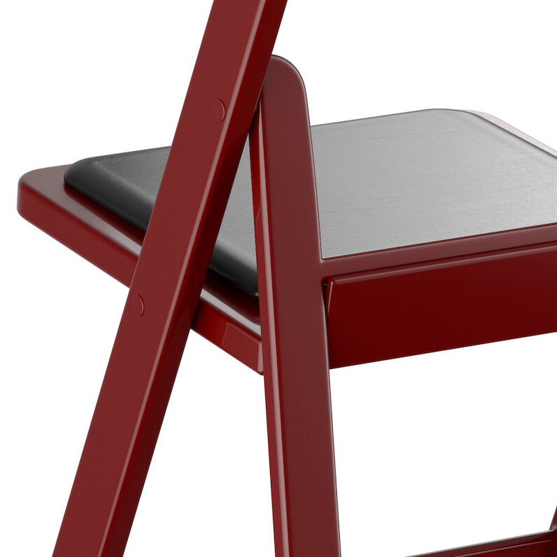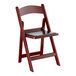 This model's mahogany resin finish adds style and class to any backyard barbeque, formal banquet, or wedding. Guests will feel comfortable for hours, thanks to the chair's vinyl padded seat. Plus, its durable polypropylene design ensures it can stand up to both indoor and outdoor use for added versatility, making it ideal for your business.