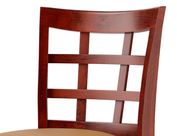 A nice, attractive style bar chair with a great back design. The mahogany finish is lovely and pairs nicely with our tables. The chairs are a great price and easy to keep clean.
