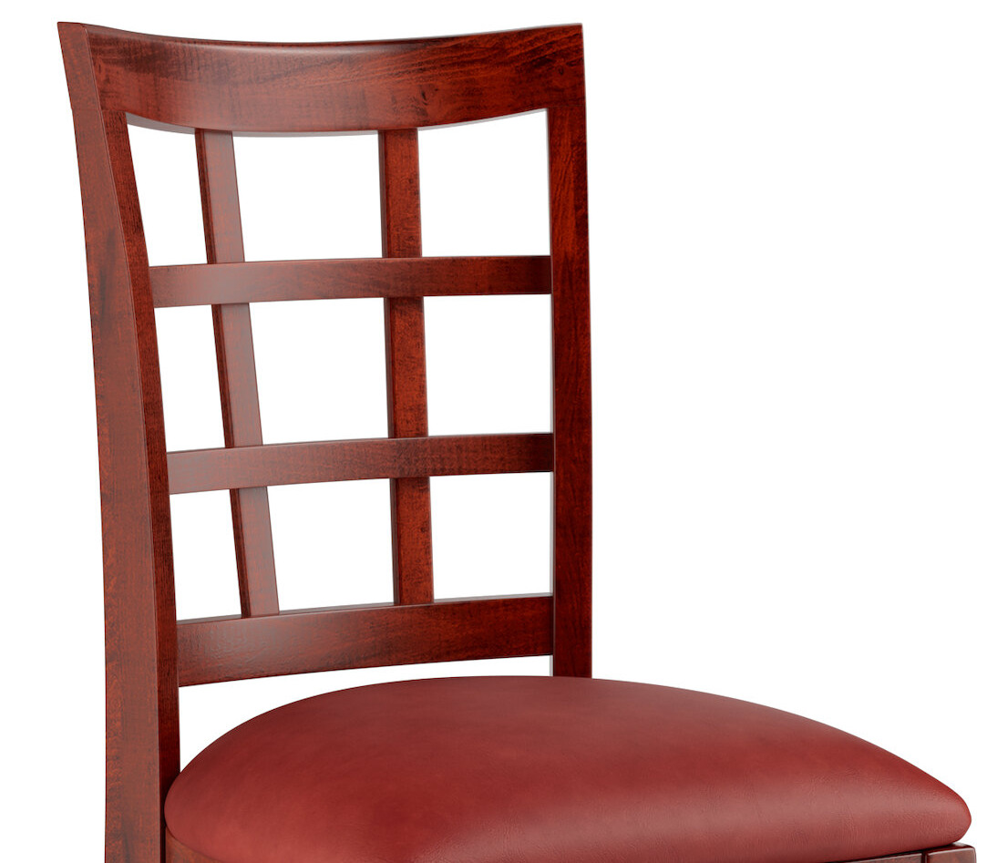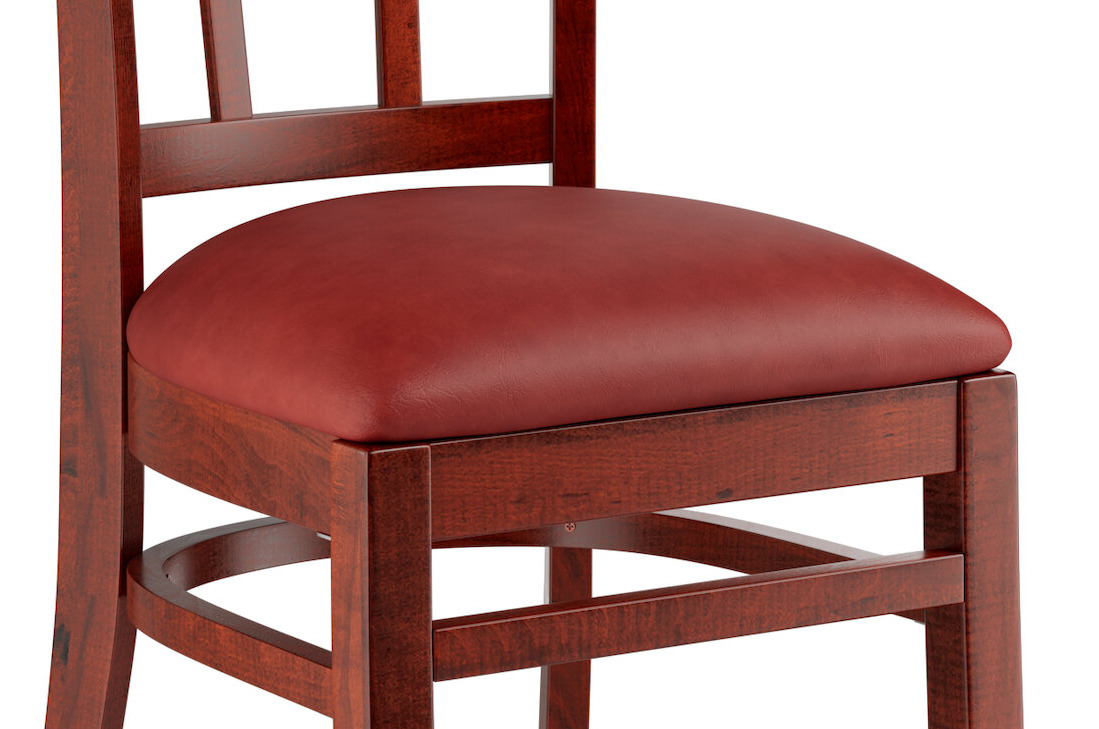 This chair's sleek padded seat and stylish mahogany finish combine with its attractive wooden frame to instill a unique look in any location. Plus, since this chair's back is contoured for a customer's back, it will provide comfort while maintaining a distinct appearance.