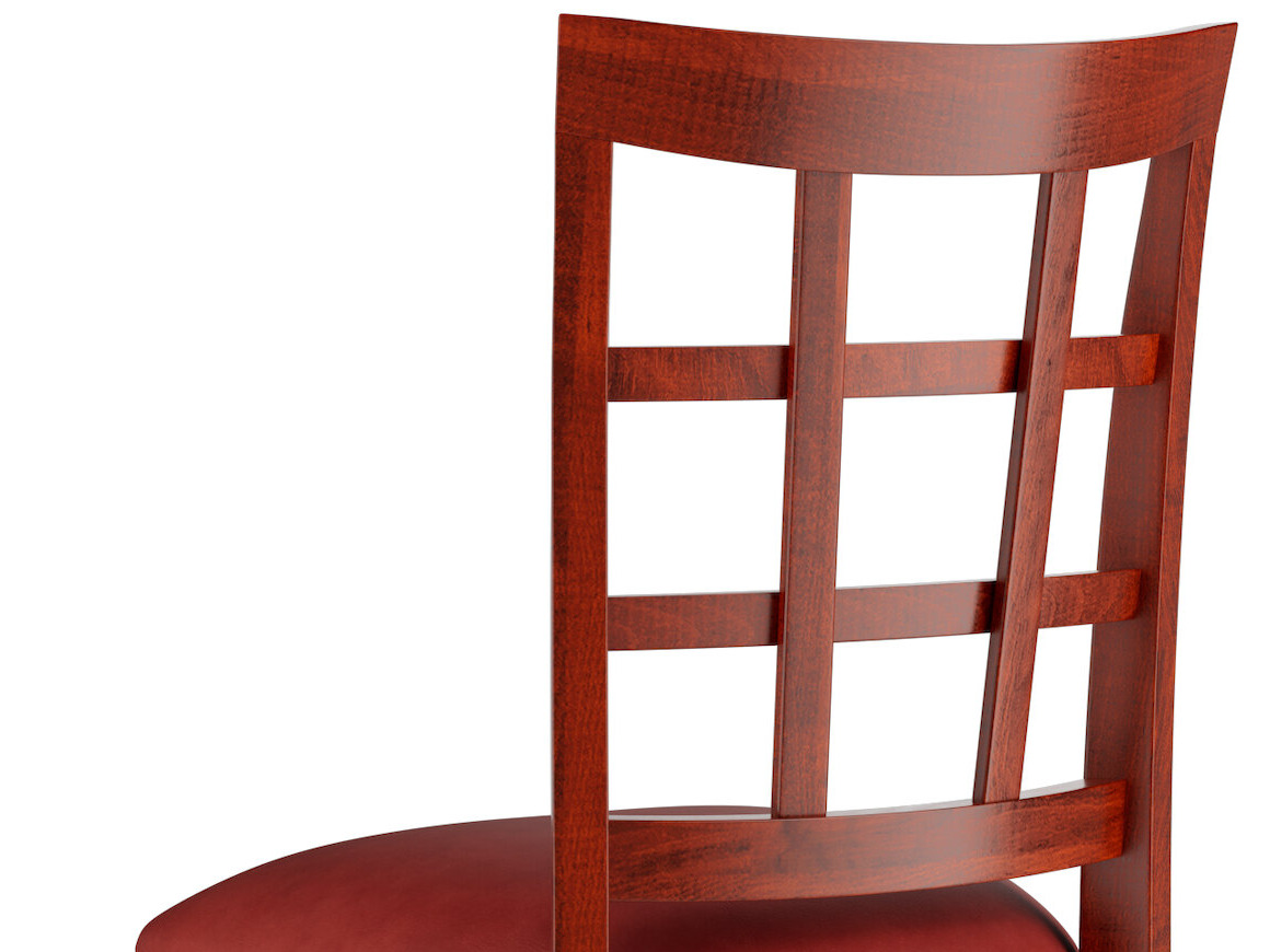 Seat your guests in comfort and style with this Lancaster Table & Seating mahogany finish wood window back chair with burgundy vinyl seat.