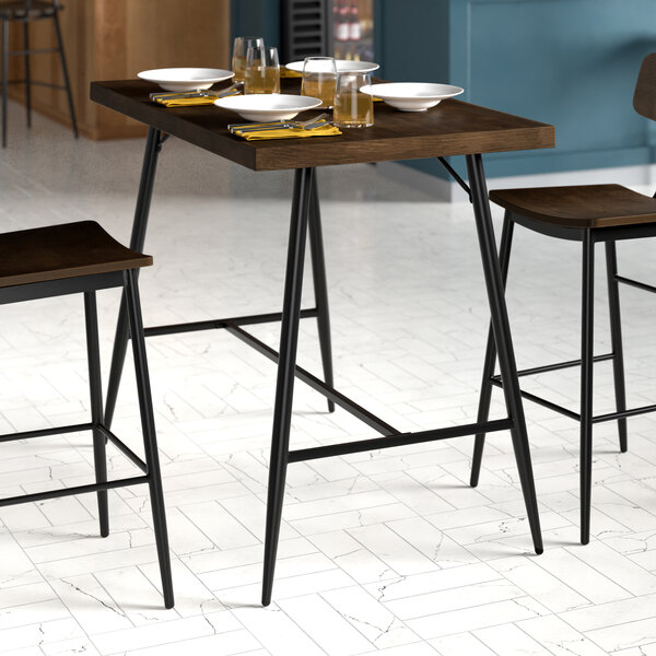 For a mid-century look your guests will love paired with durability you can trust, choose this butcher block table for your restaurant, cafe, or bar. This bar-height table comfortably seats up to 4 people, and looks great with a variety of different chairs for versatility you'll appreciate.