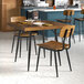 Add a unique and modern twist to your restaurant with this Lancaster Table & Seating mid-century 36" square vintage finish butcher block standard height table with 2 chairs.