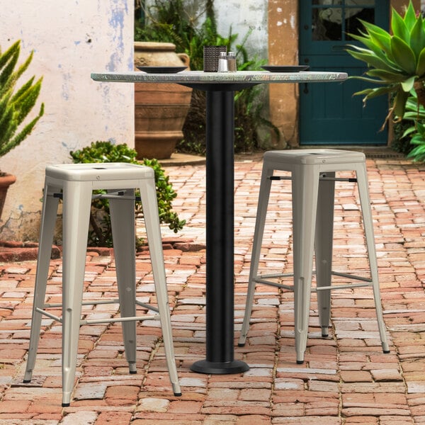This bolt down column base can easily be installed with select Lancaster Table & Seating Excalibur table tops (sold separately) to elevate them to bar height and to ensure tables stay steady and balanced while guests enjoy your signature drinks and dishes. Wherever this attractive base is placed, and whatever top it supports, it's sure to stand steady and strong for years to come.