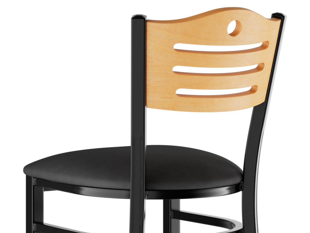 This bar stool features a style back with attractive slats and a cutout hole, which gives it a unique visual appeal. Plus, the bar stool's armless design is less restrictive and allows guests to socialize freely.