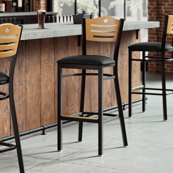 The bar stool's built-in footrest gives customers a place to rest their legs.