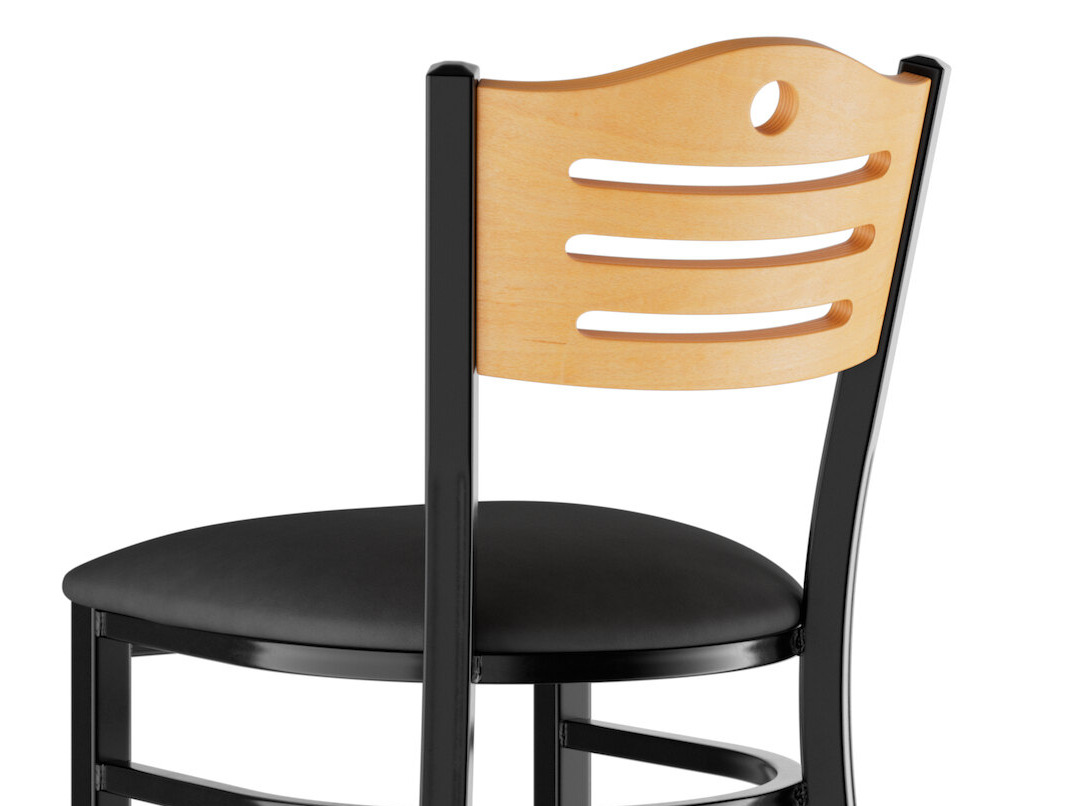 This bar stool features a style back with attractive slats and a cutout hole, which gives it a unique visual appeal. Plus, the bar stool's armless design is less restrictive and allows guests to socialize freely.