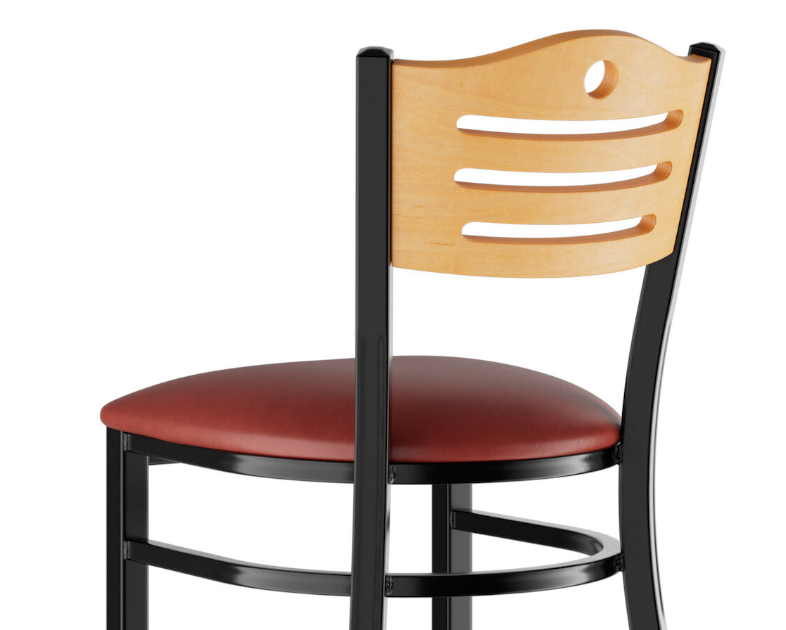 This bar stool features a style back with attractive slats and a cutout hole, which gives it a unique visual appeal. Plus, the bar stool's armless design is less restrictive and allows guests to socialize freely.