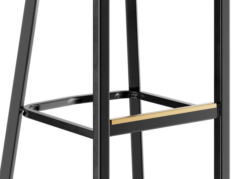 The bar stool's built-in footrest gives customers a place to rest their legs.