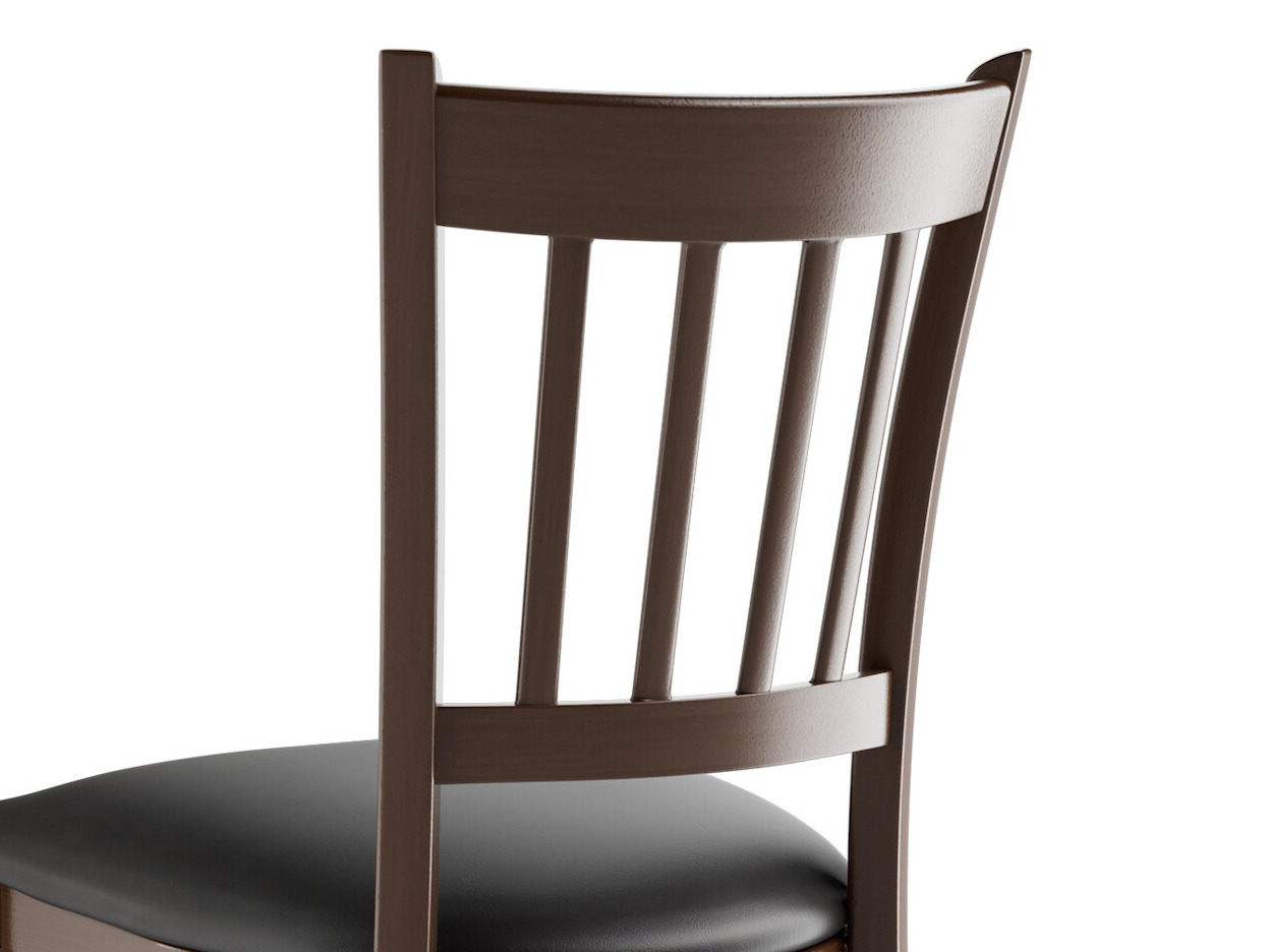Seat your guests in comfort and style with this Lancaster Table & Seating Spartan metal slat back chair with dark walnut wood grain finish and 2 1/2" black vinyl padded seat.
