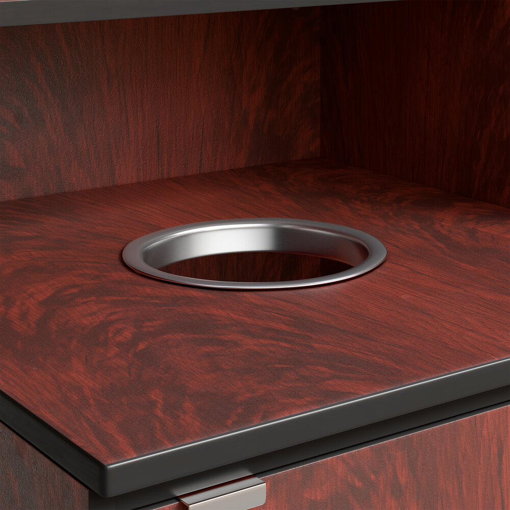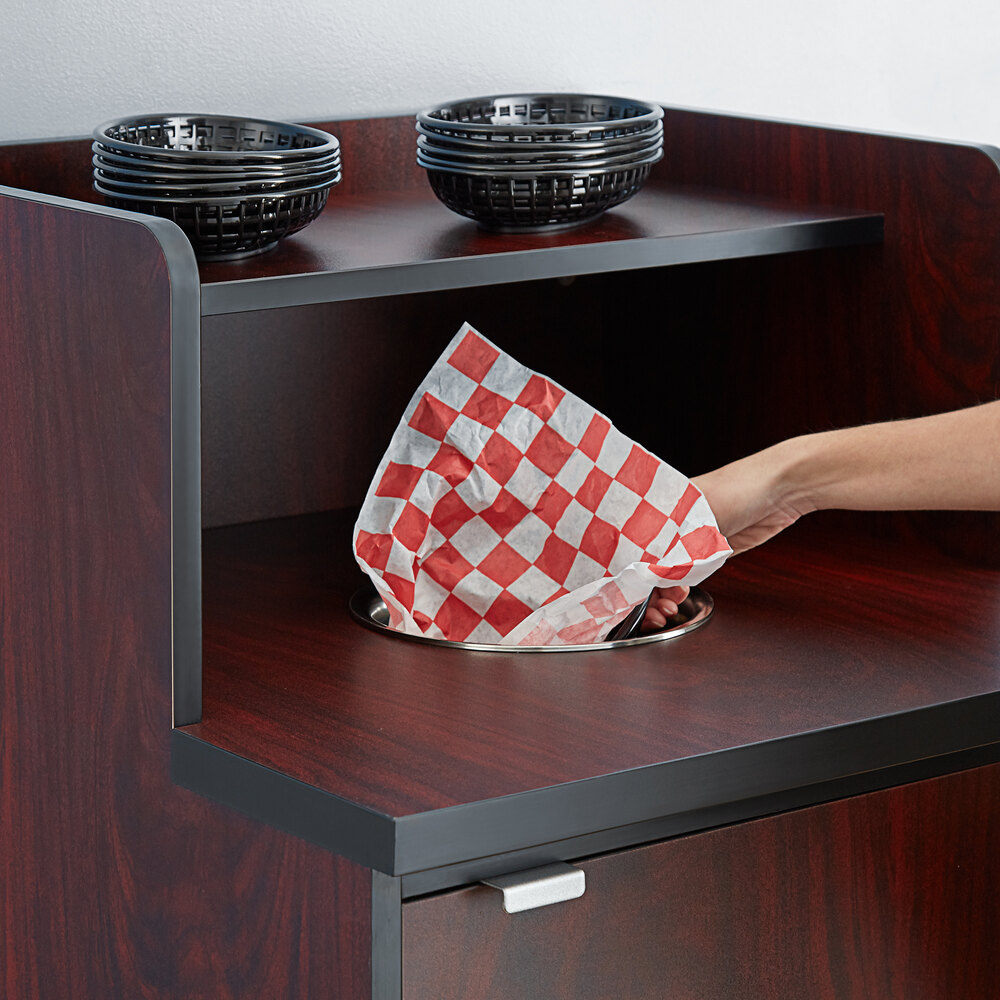 This waste bin is made out of very durable material and has a nice black finish to it. It looks perfect with the color scheme of my store. It actually looks a lot nicer than the ones you see at most fast food establishments. The shelf for trays are perfect so customers can dispose of their garbage and leave the tray right above.