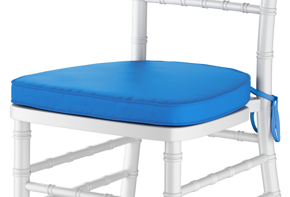 This chair comes complete with a 1 3/4" thick polyurethane sponge padded cushion to ensure that guests are seated comfortably at any event. This cushion has straps to hold it in place on the chair, and a zippered back allows the padding to be removed for laundering.
