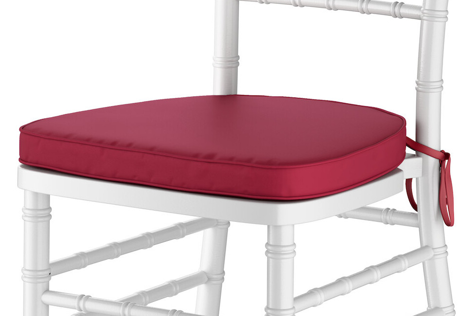 This chair includes a padded seat cushion that easily straps onto your chair and adds comfort to any event. The wine red color is stylish and capable of matching an event theme.