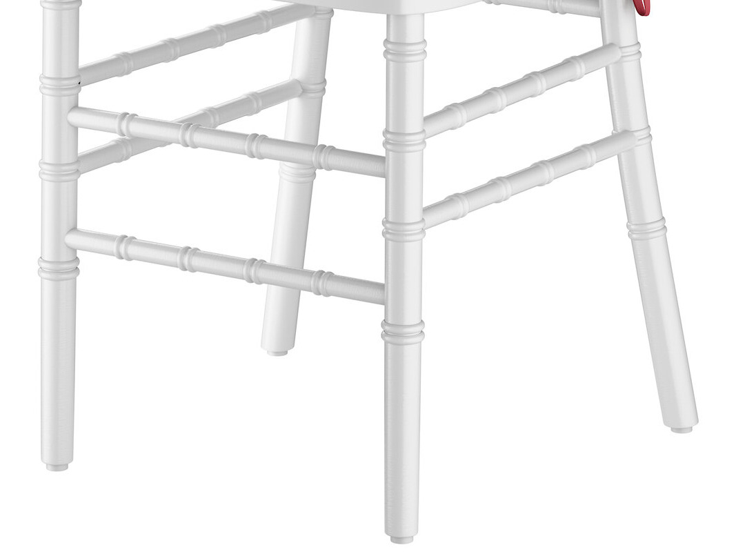 This chair features a true Italian Chiavari design that brings a sense of elegance to any wedding or milestone celebration. Its beautiful white finish also complements any casual or upscale decor.
