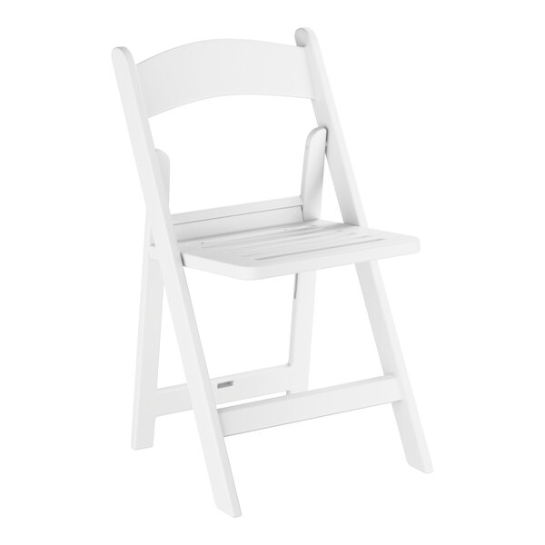 Give your guests comfortable and convenient seating at your events with this Lancaster Table & Seating white resin folding chair with slatted seat.