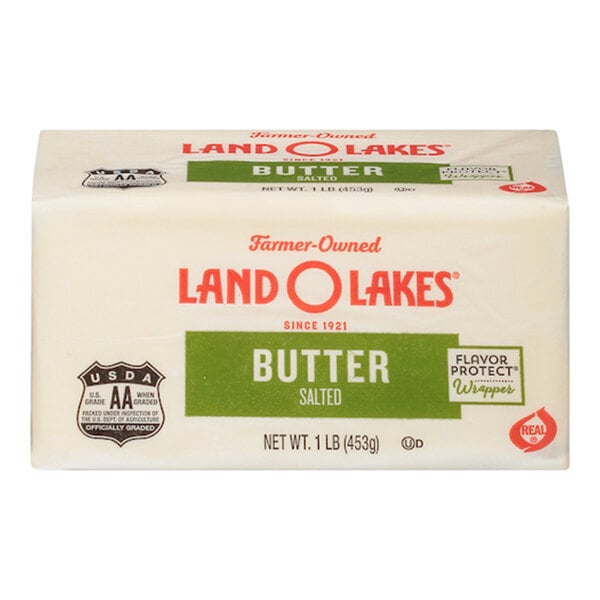 Create a variety of signature, decadent dishes with this Land O Lakes salted sweet cream Grade AA butter solid. Made with just sweet cream and salt, this Grade AA butter is the perfect way to add a rich, creamy taste to a variety of dishes without compromising on quality. Regarded as the most recognized butter brand in the country, it is sure to deliver consistent, reliable results in your kitchen. Individually packaged using FlavorProtect® wrapping to ensure freshness, the wrapper keeps unwanted flavors out and keeps the fresh butter taste in.
