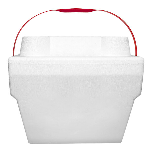 This foam cooler has 1" thick walls and a hinged lid. Plus, the included handles makes transportation a breeze!