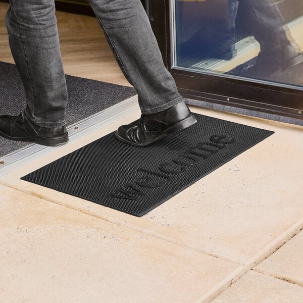 Keep your establishment clean and organized with the Lavex 1' 6" x 2' 6" rubber scraper / entrance mat with "Welcome" design! This compact mat is perfect for doorways and entryways, providing a stylish and functional addition to your front-of-house settings. The mat's "Welcome" text and aesthetic pattern create an inviting atmosphere for customers, making them feel comfortable as they enter your business. Not only does this mat add charm to your space, but it also serves a practical purpose by allowing customers to clean their shoes off before stepping inside.
