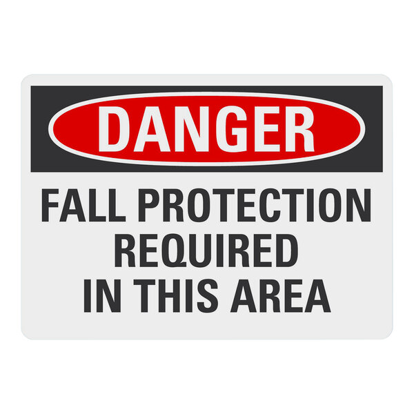 Lavex 10" x 7" Engineer-Grade Reflective Adhesive Vinyl "Danger / Fall Protection Required In This Area" Safety Label