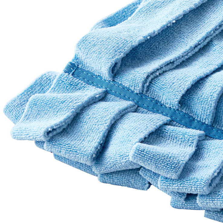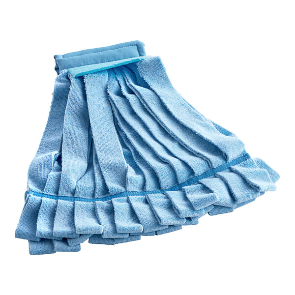Use this mop pad on any hard surface in your office, restaurant, school, or healthcare facility for a residue- and streak-free floor. Keep your establishment clean and ready for customers or guests with this Lavex 12 oz. blue microfiber strip mop with 5" blue headband!