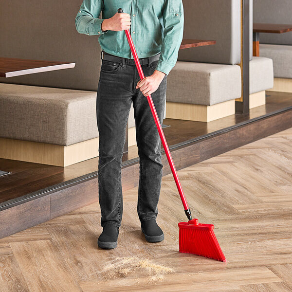 This Lavex red flagged angled broom makes sweeping a breeze!