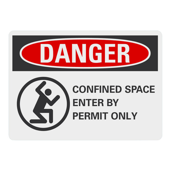 Lavex 14" x 10" Non-Reflective Adhesive Vinyl "Danger / Confined Space / Enter By Permit Only" Safety Label with Symbol
