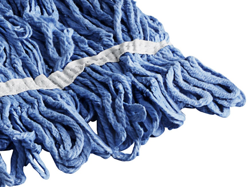 This mop head's blue color makes it easy to implement a color-coded cleaning system for the safety of your guests and employees. Use this mop head to quickly and easily absorb cleaning liquids or messes in restaurants, schools, and offices.