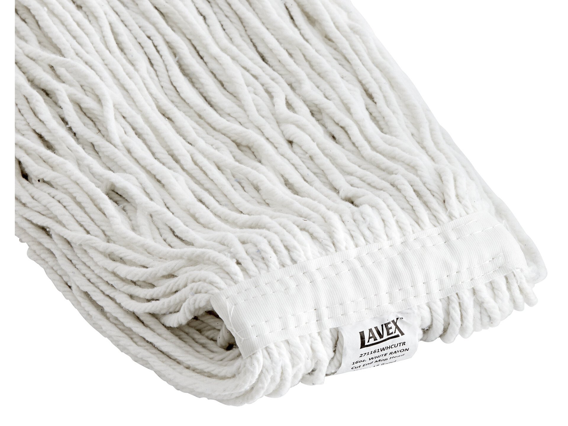 Lavex 16 oz. #24 White Rayon Cut-End Mop Head with 1" Headband - 12/Case