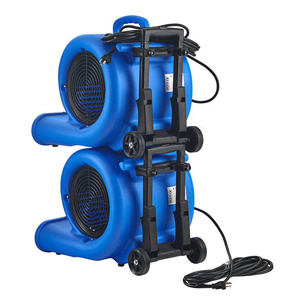 Both air movers are outfitted with back wheels, a telescoping handle, and a grab-n-go handle on top of the unit, which makes them easy to move from place to place. When in storage or transit, an individual air mover can be stacked up to 5 high for space-efficient convenience. Each 1/2 hp air mover includes a 25' cord and requires a 115V electrical connection to operate.