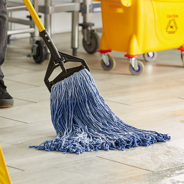This mop head's blue color makes it easy to implement a color-coded cleaning system for the safety of your guests and employees. Use this mop head to quickly and easily absorb cleaning liquids or messes in restaurants, schools, and offices.