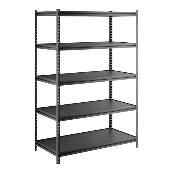 For a safe, durable storage solution, rely on this Lavex black Z-beam 5-shelf boltless double rivet laminate shelving unit!