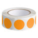 This label is easy to write on thanks to its blank design. Made with a 1 1/2" core diameter and pressure-sensitive paper with permanent adhesive, this item can be confidently placed on trays, plastic containers, boxes, and folders. The label's 3/4" diameter is the perfect size to mark inventory or create charts and visual aids.