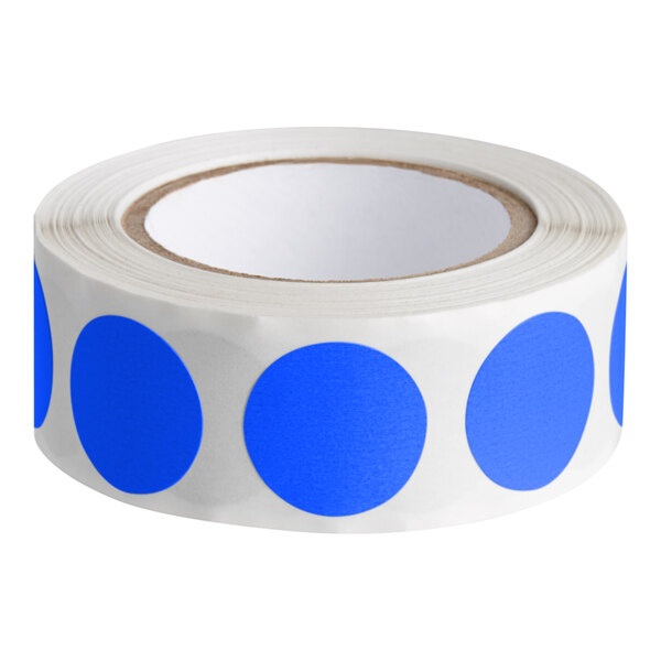 This label is easy to write on thanks to its blank design. Made with a 1 1/2" core diameter and pressure-sensitive paper with permanent adhesive, this item can be confidently placed on trays, plastic containers, boxes, and folders. The label's 3/4" diameter is the perfect size to mark inventory or create charts and visual aids.