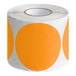 This label is easy to write on thanks to its blank design. Made with a 1 1/2" core diameter and pressure-sensitive paper with permanent adhesive, this item can be confidently placed on trays, plastic containers, boxes, and folders. The label's 3" diameter is the perfect size to mark inventory or create charts and visual aids.