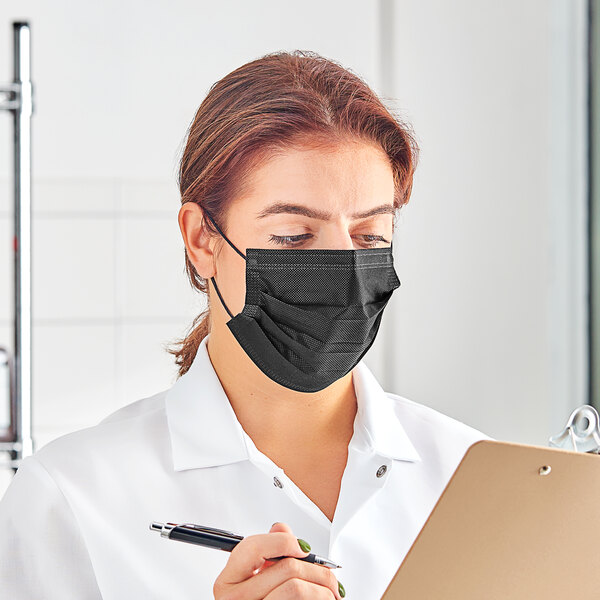 Enhance your establishment's safety measures with these Lavex 3-ply black disposable polyethylene protective face masks!